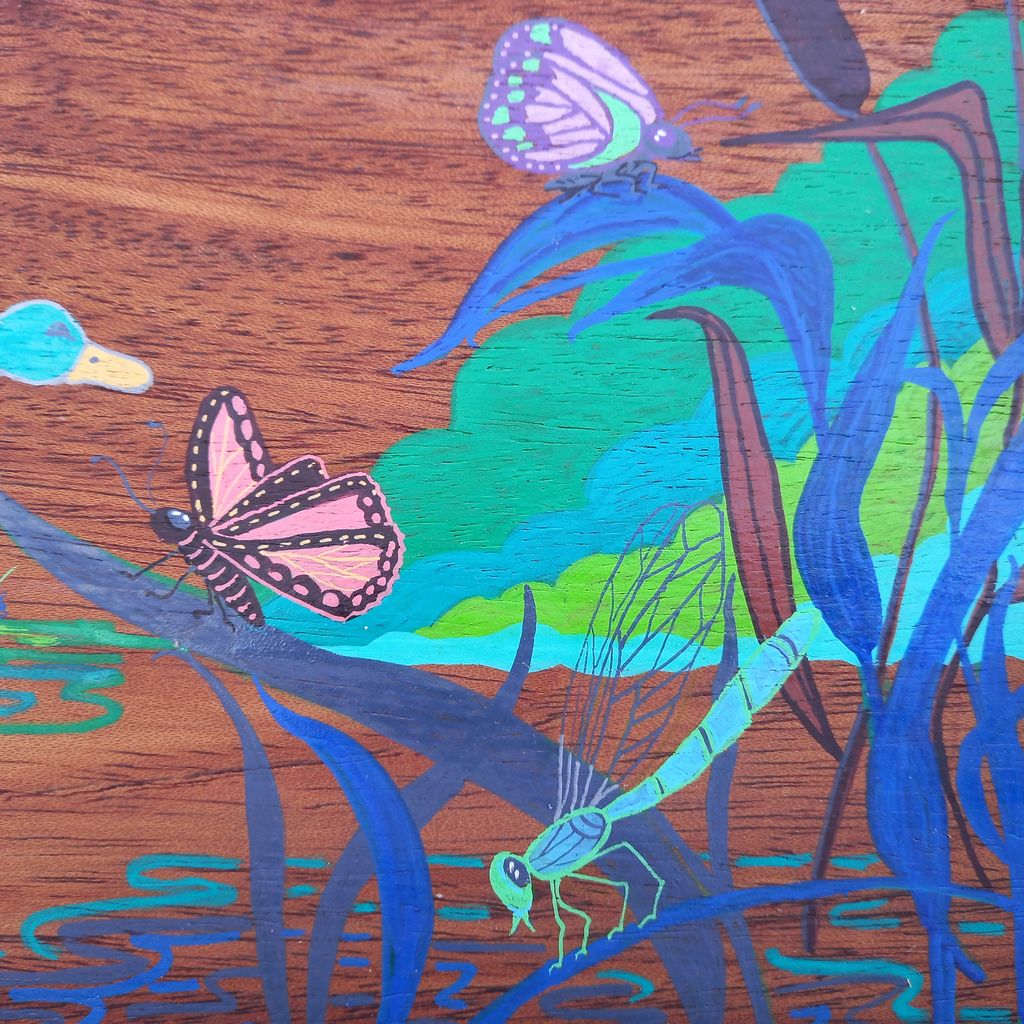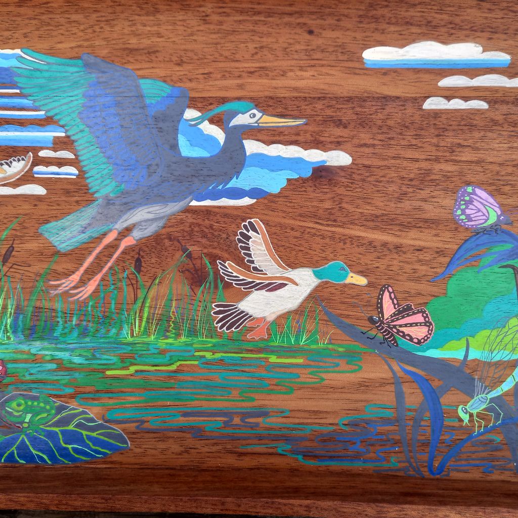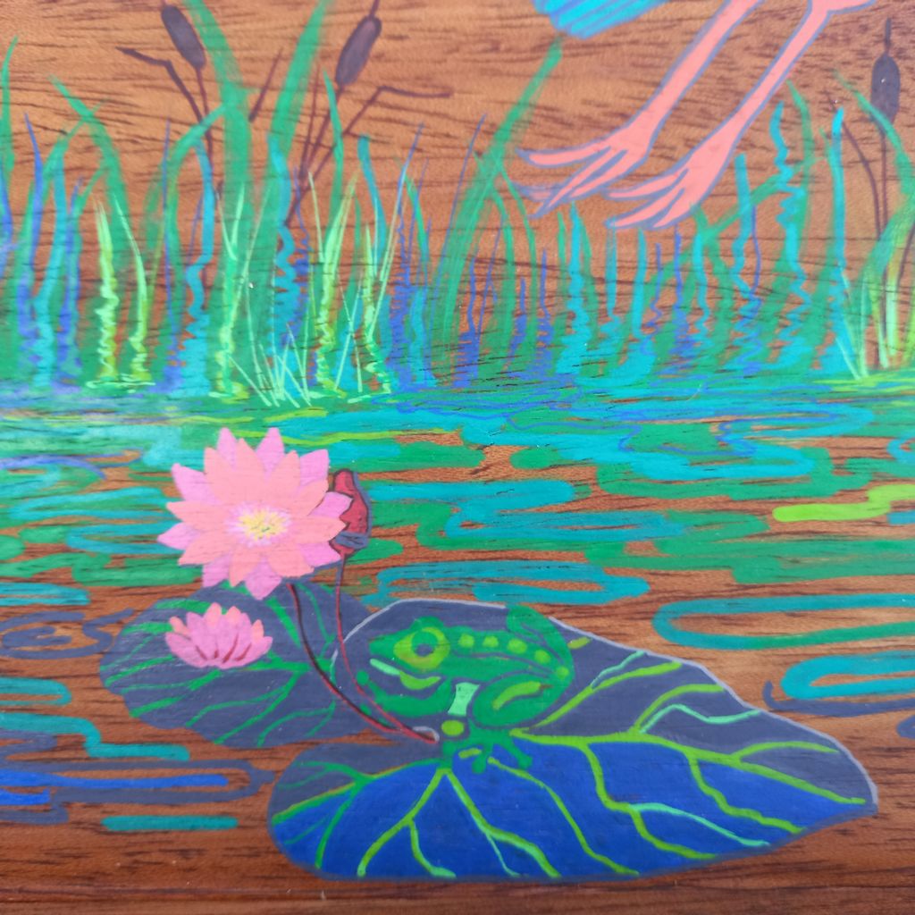 Décor en peinture artistique d’un étang solognot aux magnifiques faune et flore – Technique acrylique