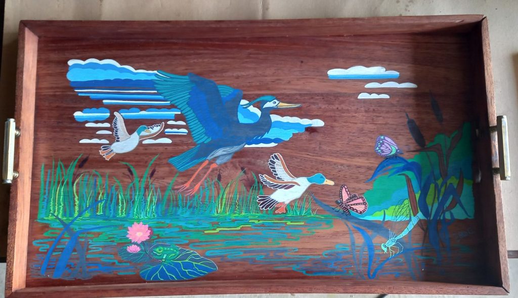 Décor en peinture artistique d’un étang solognot aux magnifiques faune et flore – Technique acrylique