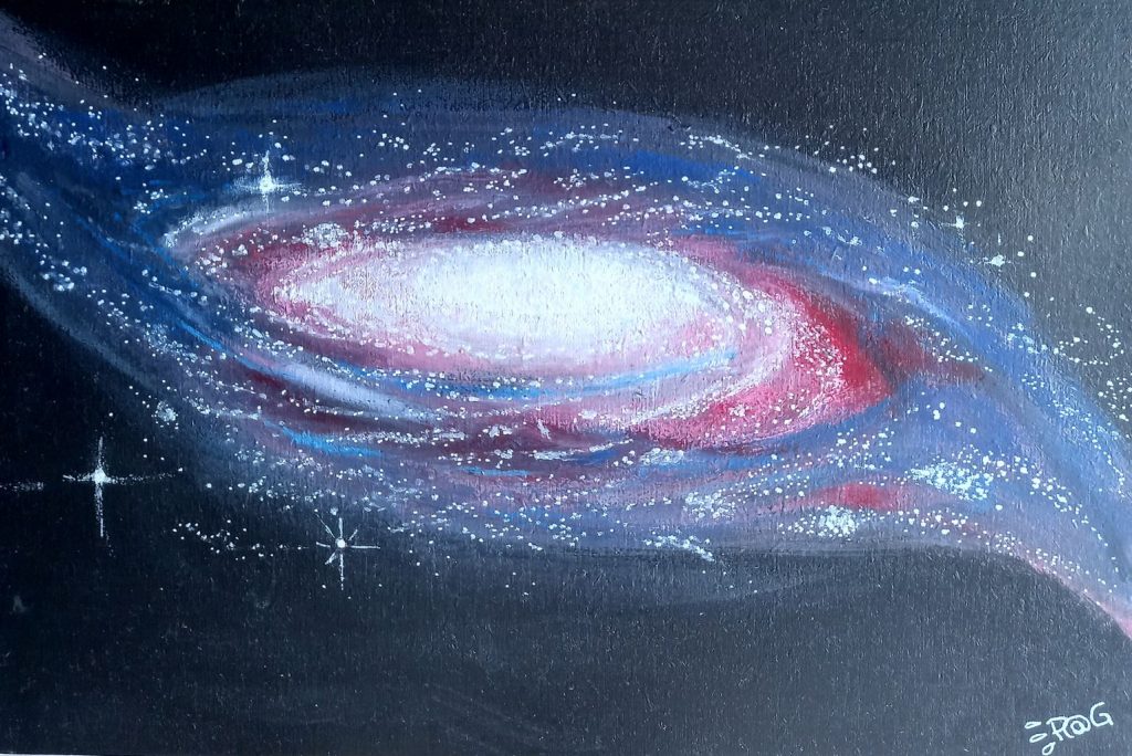 TABLEAU ACRYLIQUE « Une galaxie parmi …? » (Orion) pascale goulby il y a 1 mois Peinture artistique – Acrylique sur bois contreplaqué écorecyclé Dimensions : 33 x 22 cm Livré avec système d’accrochage au verso